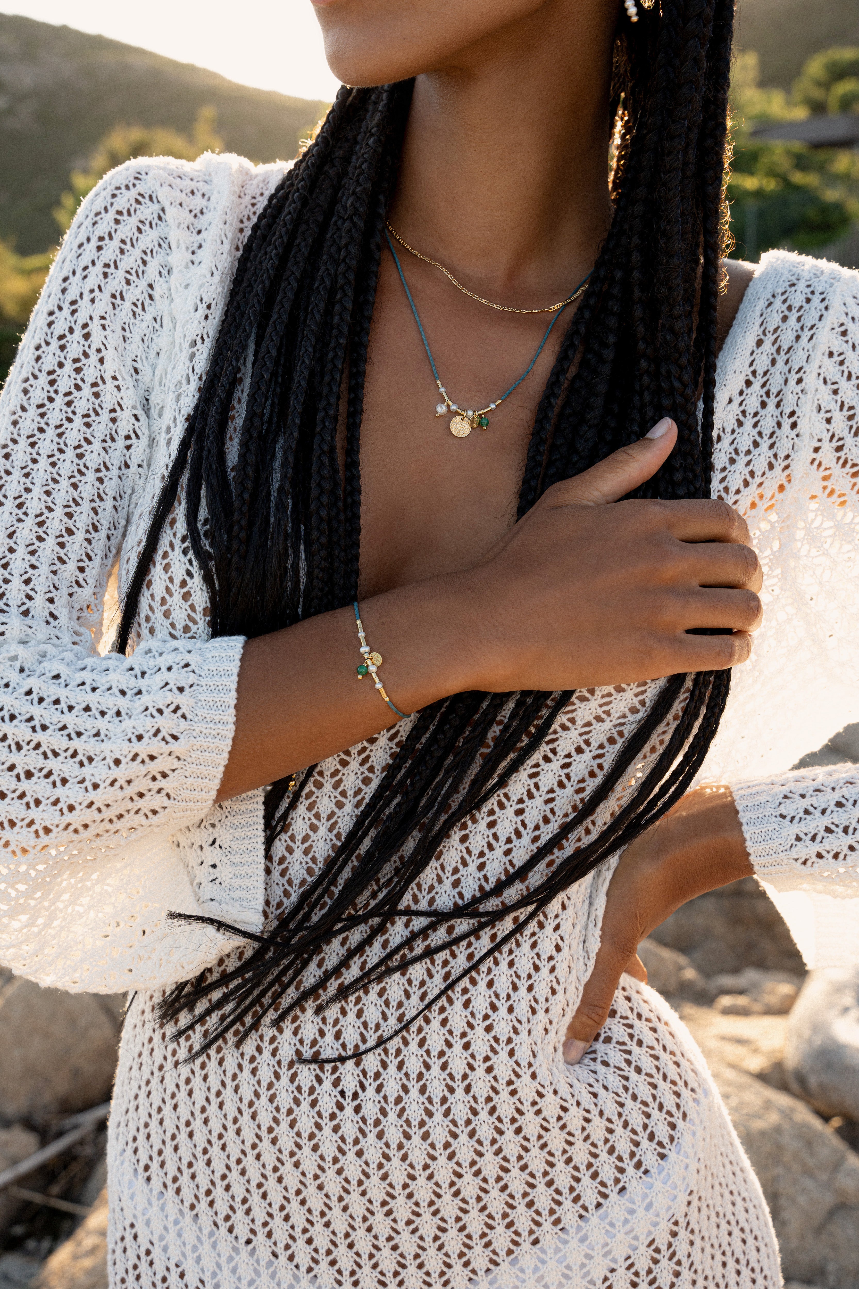 Für meine Schmuckstücke verwende ich sorgfältig ausgewählte Edelsteine mit besonderer Ausstrahlung und arbeite bevorzugt mit recyceltem Gold und Silber. Hochwertige Vergoldungen und eine Veredelung mit Rhodium sorgen dafür, dass dein Schmuckstück dich lange begleitet – strahlend schön, beständig und hautverträglich. Alles, was ich nutze, wähle ich mit Bedacht – nachhaltig, echt und im Einklang mit meinen Werten.