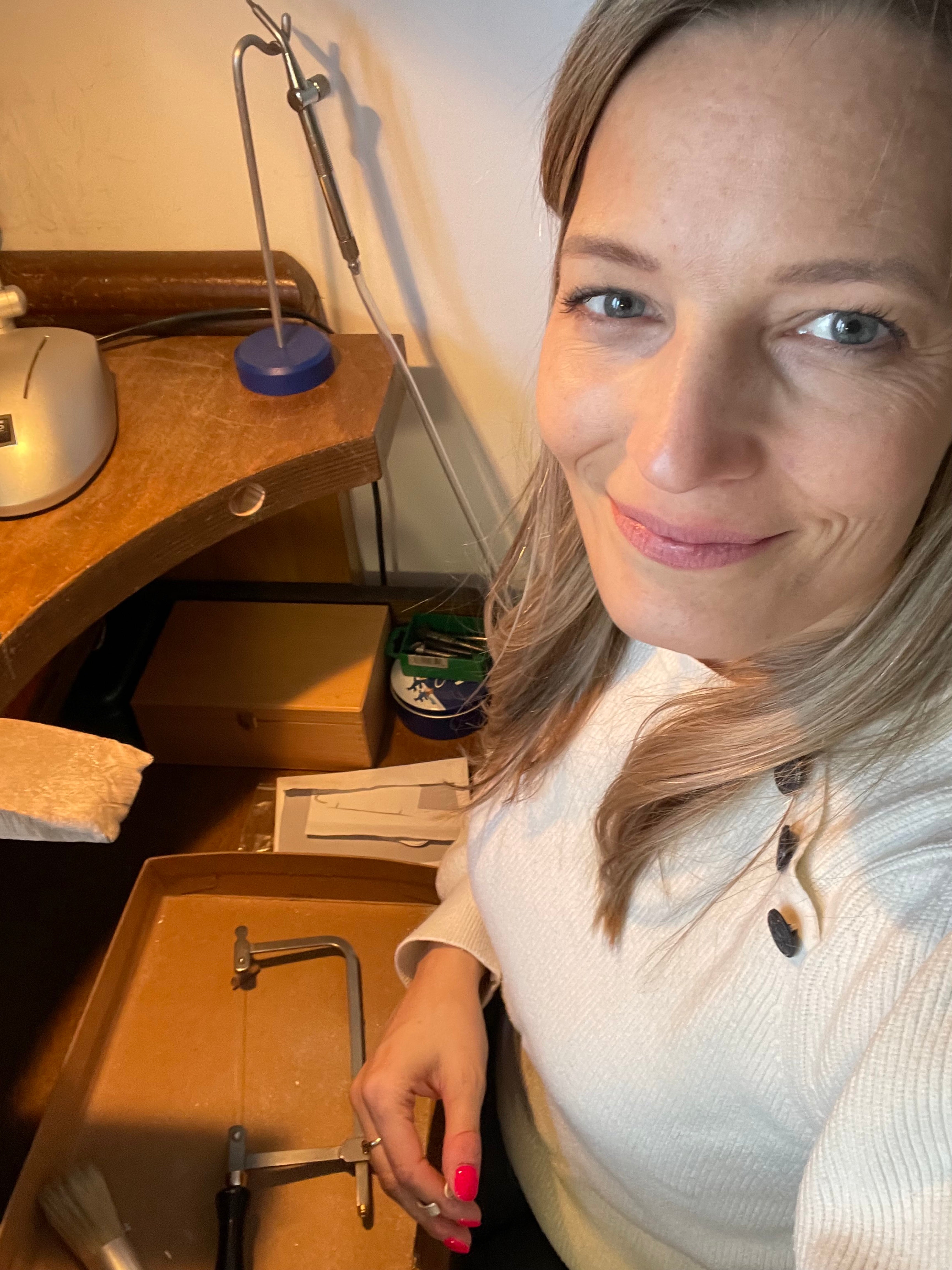 2022 traf ich dann meinen Goldschmiedemeister – ein Mensch mit über 70 Jahren Erfahrung – der mich heute, einmal pro Woche, mit großer Hingabe in die Kunst des Schmiedens einführt.