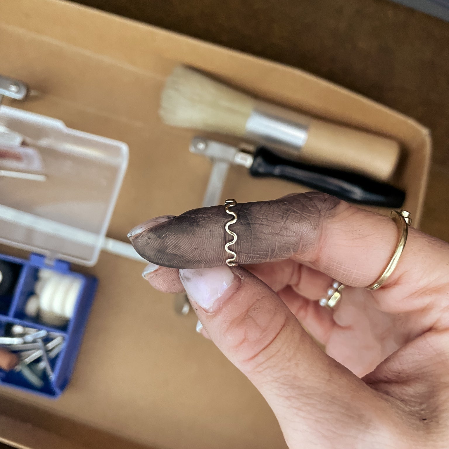 Ein Teil entsteht gemeinsam mit meinem Goldschmied in seiner Werkstatt – getragen von über 70 Jahren Erfahrung, Präzision und handwerklicher Hingabe. Andere Designs entstehen in meinem Studio und werden sorgfältig produziert, um meine Idee in ihrer schönsten Form zum Leben zu erwecken. Und einige Stücke fertige ich komplett selbst – vom ersten Entwurf bis zum letzten Schliff.