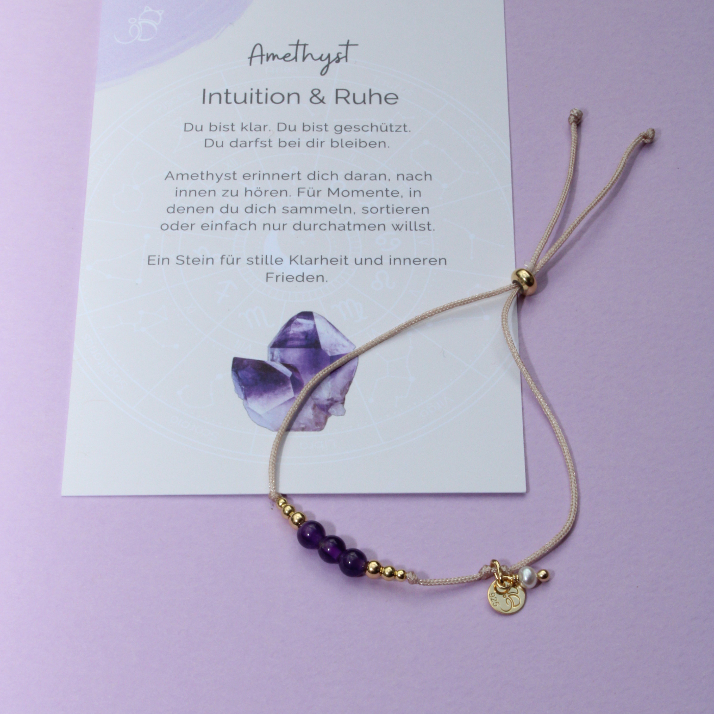 Zu jedem Armband erhältst du eine hochwertige Bedeutungskarte mit Affirmation sowie ein kleines Baumwollbeutelchen – als liebevolle Geschenkverpackung.